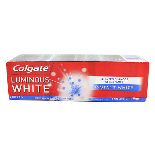 Para que serve: <div class="descricao-produto"> <h2>Creme Dental Colgate Luminous White Instant 70g: Para que serve e como usar</h2> <h3>Para que serve o Creme Dental Colgate Luminous White Instant 70g?</h3> <p>O Creme Dental Colgate Luminous White Instant 70g foi desenvolvido para proporcionar um sorriso visivelmente mais branco instantaneamente. Sua fórmula avançada ajuda a remover manchas superficiais, revelando dentes mais luminosos e promovendo um hálito fresco e duradouro.</p> <h3>Principais Benefícios</h3> <ul> <li>Proporciona dentes visivelmente mais brancos instantaneamente.</li> <li>Ajuda a remover manchas superficiais causadas por alimentos e bebidas.</li> <li>Oferece uma sensação de hálito fresco e limpeza prolongada.</li> <li>Auxilia na proteção contra cáries com o uso regular.</li> </ul> <h3>Como usar o Creme Dental Colgate Luminous White Instant 70g?</h3> <p>Escove os dentes adequadamente após cada refeição, no mínimo três vezes ao dia ou conforme a recomendação do seu dentista. Aplique uma pequena quantidade do creme dental na escova e escove por pelo menos dois minutos, garantindo que todas as superfícies sejam limpas, enxaguando em seguida.</p> <h2>Especificações do Produto</h2> <table> <tr><td>Marca</td><td>Colgate</td></tr> <tr><td>Categoria</td><td>Não informado</td></tr> </table> <h2>Perguntas Frequentes sobre Creme Dental Colgate Luminous White Instant 70g</h2> <details open="True"> <summary><h3>O Creme Dental Colgate Luminous White Instant realmente clareia os dentes?</h3></summary> <p>Sim, o Creme Dental Colgate Luminous White Instant é formulado para proporcionar um clareamento óptico instantâneo, auxiliando na remoção de manchas superficiais para dentes visivelmente mais brancos desde a primeira escovação. Seus ingredientes atuam para refletir a luz, criando um efeito de branqueamento imediato.</p> </details> <details open="True"> <summary><h3>Com que frequência devo usar o creme dental para ver resultados?</h3></summary> <p>Para melhores resultados, utilize o creme dental regularmente, escovando os dentes após as principais refeições, no mínimo duas vezes ao dia. O uso contínuo contribui para a manutenção da brancura e saúde bucal. Consulte seu dentista para uma orientação personalizada.</p> </details> <details open="True"> <summary><h3>Este creme dental causa sensibilidade nos dentes?</h3></summary> <p>O Creme Dental Colgate Luminous White Instant é geralmente bem tolerado. No entanto, se você tem dentes sensíveis ou desenvolver qualquer irritação, é aconselhável consultar um dentista. Ele poderá indicar o uso adequado ou um produto alternativo.</p> </details> <div class="legal-notice-box"><p>Consulte sempre um dermatologista antes de iniciar o uso de um novo produto. Em caso de irritação, suspenda o uso e procure orientação médica.</p></div> </div><p></p>